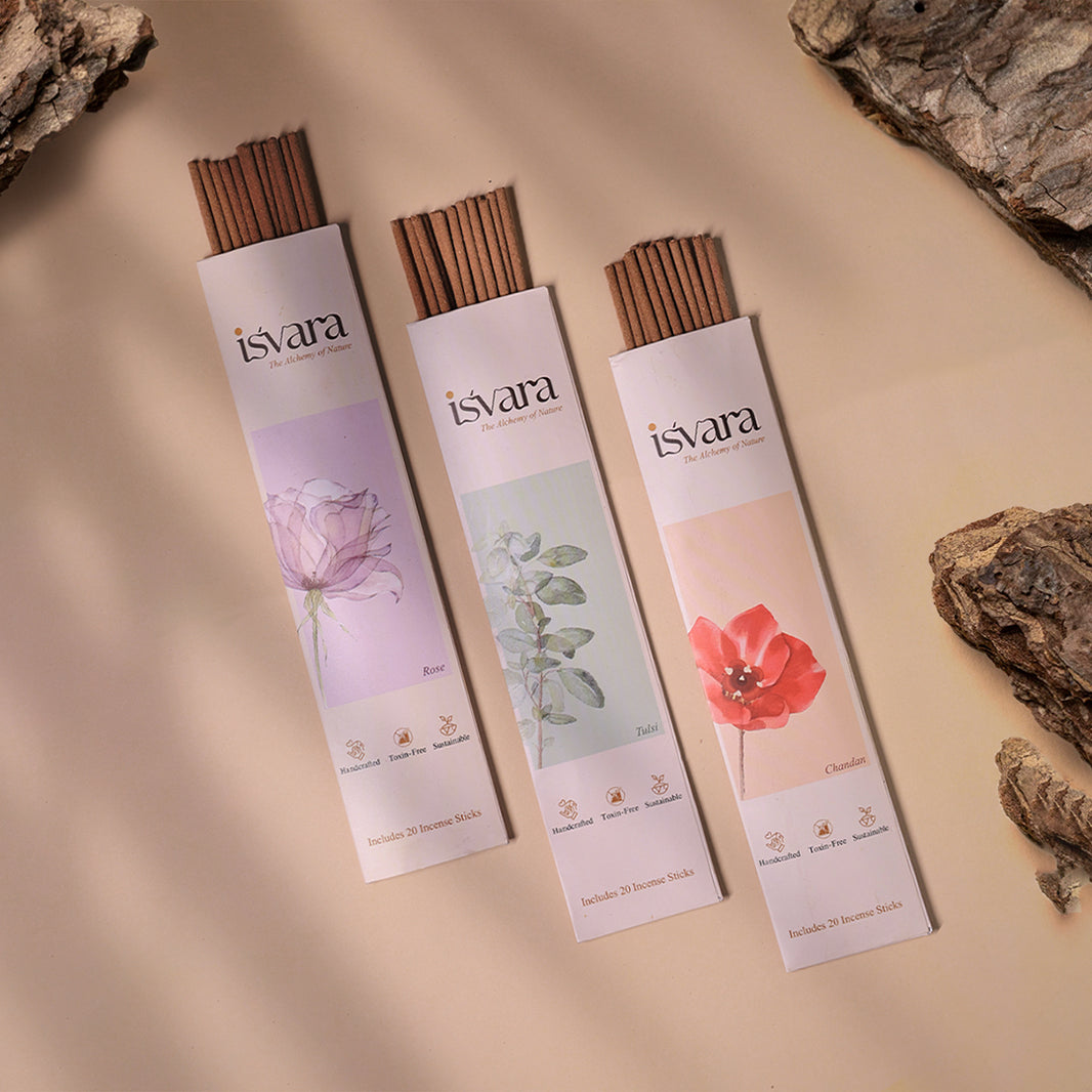 Our incense is handcrafted using 100% natural ingredients, including recycled flower waste, making each stick eco-friendly, sustainable, and toxin-free. Every fragrance is carefully crafted to promote well-being while supporting local artisans and communities.